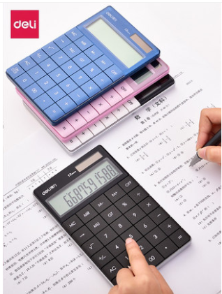 得力计算机办公时尚女计算器可爱韩国糖果色太阳能学生用考试计算机器小型便携小号会计专用大屏大按键计算机